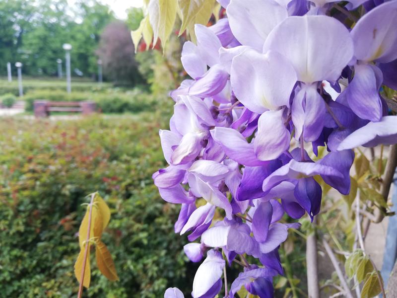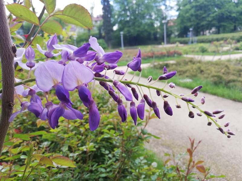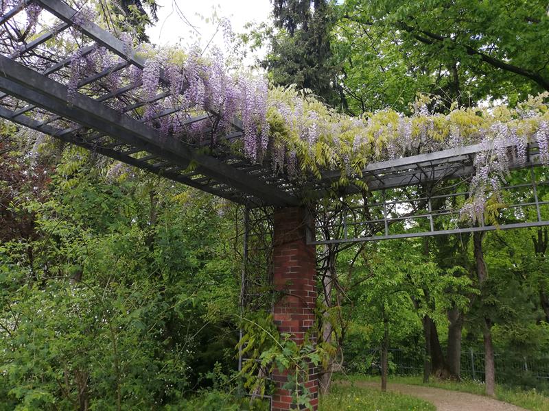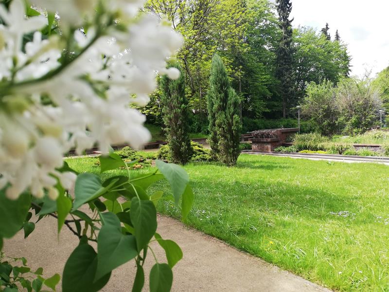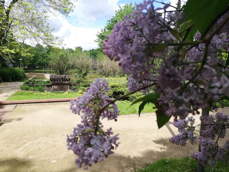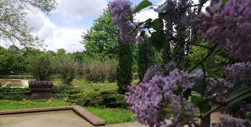 Szukającym wytchnienia od niełatwych realiów czasu zarazy polecamy hortiterapię, a w szczególności wizytę w szczecińskim Ogrodzie Różanym. Wprawdzie na feerię barw królowej kwiatów jeszcze nie można liczyć, ale ten miejski ogród jest już w rozkwicie: kobierców barwinków i bergenii, dąbrówek i gęsiówek, miodunek, niezapominajek i stokrotek, przetaczników, wilczomleczy. Nie brakuje czosnków olbrzymich, irysów, a nawet pierwszych orlików. Choć nieco osłabione przymrozkami, na pergolach rozkwitły wisterie. Natomiast najefektowniej się prezentują oszałamiająco pachnące lilaki (bzy). Pierwsze pąki otworzyła nieśmiało także jedna z rabatowych róż - odmiany 'Venus'.