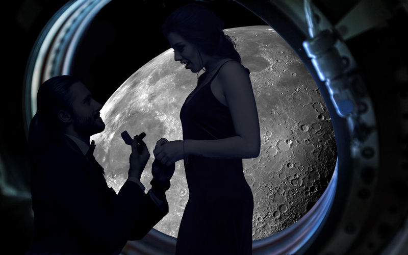 Od marca 2022 r., każdy bogaty zakochany może zarezerwować usługę "pod klucz" na www.proposeinparis.com i skorzystać, pięć miesięcy później, z: trening fizyczny i wcześniejsze, 12-tygodniowe szkolenie techniczne, wylot w D-Day z Kennedy Space Center w Cape Canaveral na Florydzie, puszczenie w słuchawkach pary kosmicznych turystów "Also sprach Zarathustra, op.30” Ryszarda Straussa w momencie odczuwania pierwszych efektów nieważkości, przybycie na księżycową orbitę, trzy dni później, z lotem nad popielatą planetą na wysokości 200/300 km, przerwanie wszelkiej komunikacji z Ziemią przez ok. 30 minut, podczas których kapsuła będzie leciała nad ciemną stroną Księżyca, puszczenie piosenki „Fly Me to the Moon” Sinatry w trakcie lotu, pozwalające pretendentowi poprosić o rękę ukochanej (pierścionek zaręczynowy ukryty będzie w kombinezonie ), spektakularne pojawienie się Ziemi za kraterami księżycowymi i podróż powrotna trwająca cztery dni.