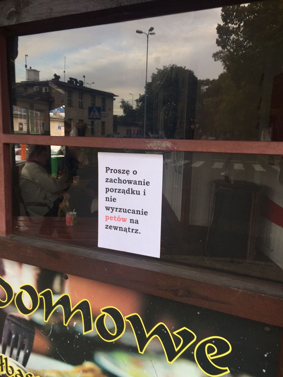 Apel uniwersalny bo i konsumenci są różni. Jedni wyrzucają niedopałki papierosów, inni plastikowe butelki po napojach. Ale żeby tak na zewnątrz...