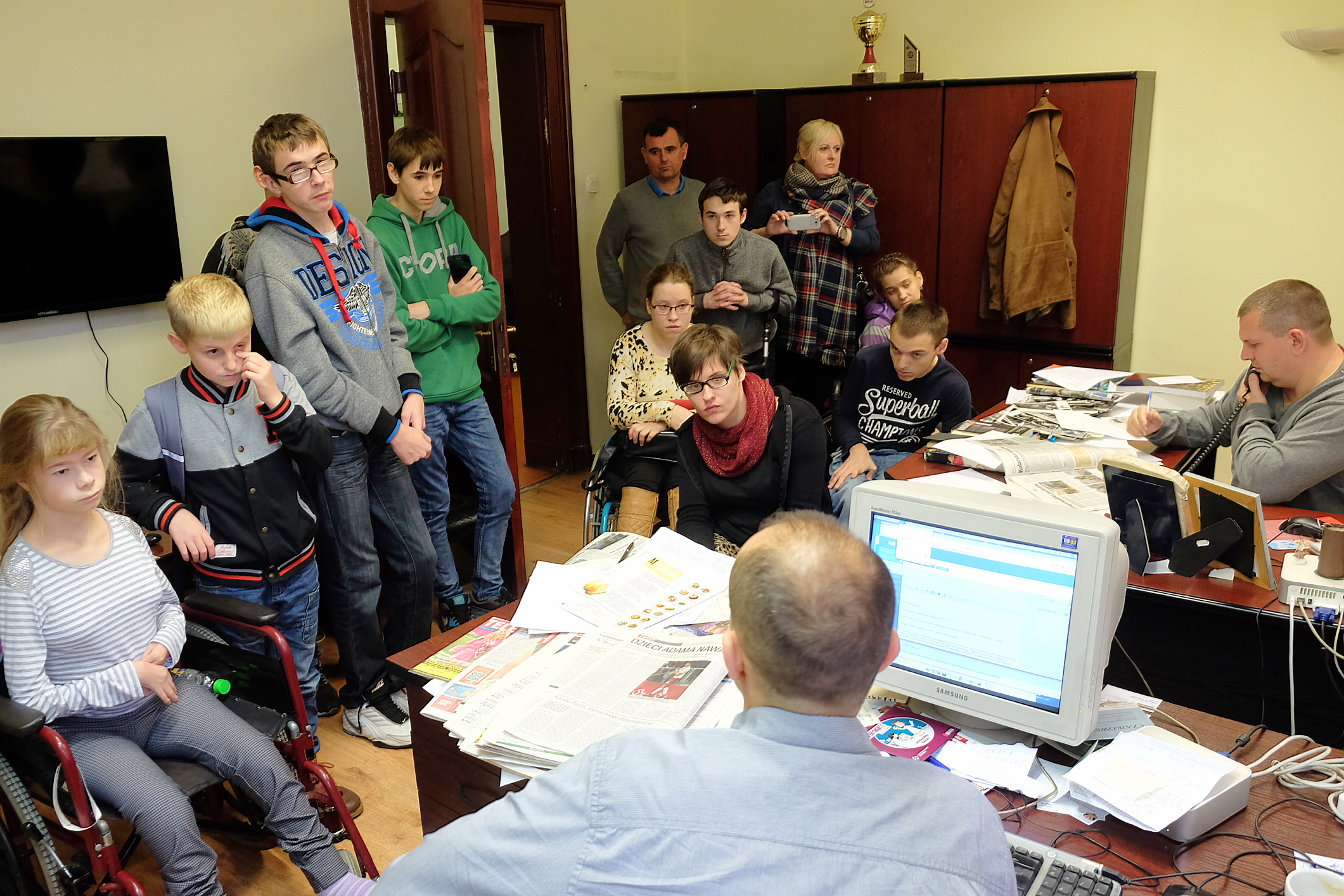 Dziennikarze szkolnej gazetki „Uczniak" (a właściwie „Óczniak" - przewrotnie z błędem), ukazującej się w Specjalnym Ośrodku Szkolno - Wychowawczym nr 1 dla Dzieci Niepełnosprawnych Ruchowo im. Marii Grzegorzewskiej w Policach, odwiedzili we wtorek naszą redakcję.