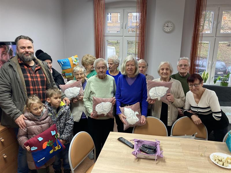 Poduszki przygotowywano w pracowni Strefa Szycia i podczas zajęć koła plastycznego Dali, pod kierunkiem Angeliki Antończak i Emmy Babiak. W tym tygodniu mięciutkie prezenty trafiły do Dziennego Domu Senior+ w Stargardzie, który działa przy ul. Limanowskiego.