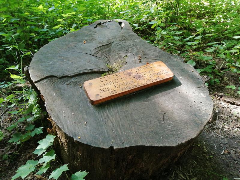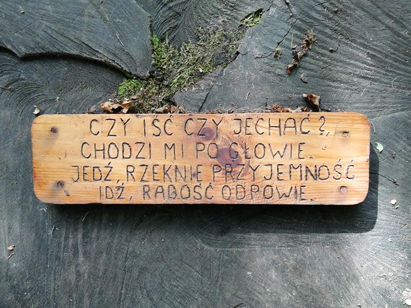 W Lesie Arkońskim na pniu dawno ściętego drzewa ktoś umieścił drewnianą tabliczkę. Wyryty na niej czterowers brzmi, jak parafraza słynnego monologu Hamleta z dramatu Wiliama Szekspira: "Być albo nie być; oto jest pytanie". Przechodnie powinni sami odpowiedzieć sobie na postawione w nim pytanie, by rozstrzygnąć dylemat: "Czy iść, czy jechać?/Chodzi mi po głowie. Jedź, rzeknie przyjemność/Idź, radość odpowie." Jak widać nawet wśród miłośników przyrody nie brakuje prawdziwych poetów.©℗