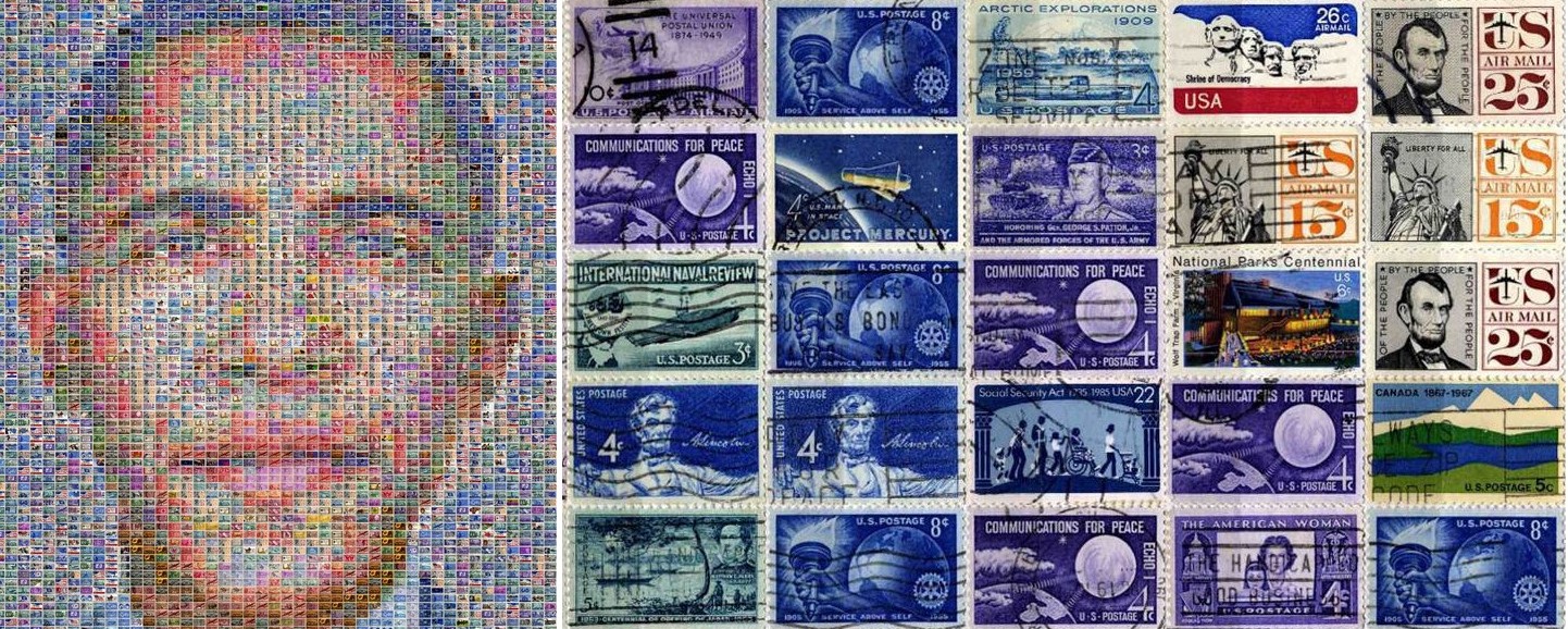 Niemiecki artysta Daniel Voelker użył 3600 starych, amerykańskich znaczków pocztowych do stworzenia portretu prezydenta USA Baracka Obamy. To z okazji 55. urodziny, które obchodził on 4 sierpnia. Fot. EPA/DANIEL VOELKER