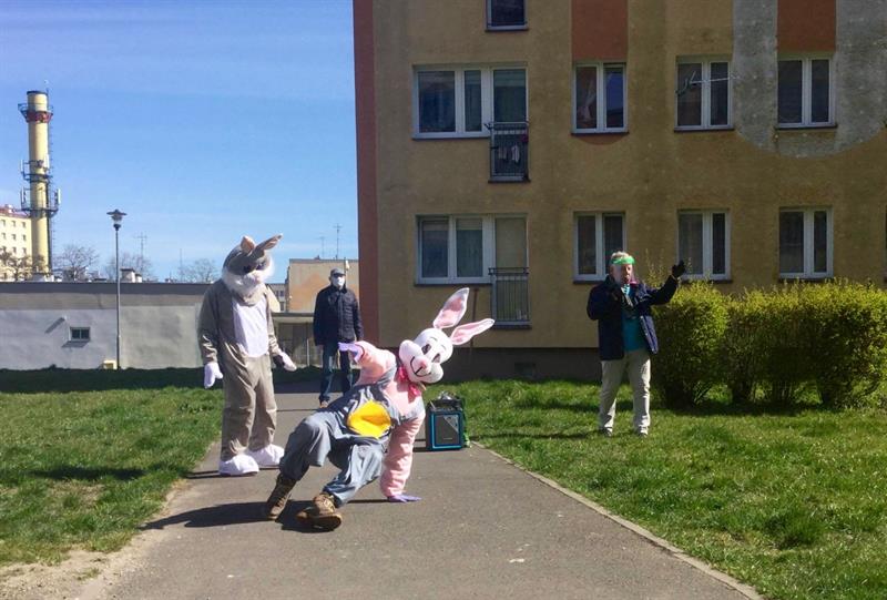 Znany społecznik, były poseł i samorządowiec z Koszalina, Stefan Romecki, pozazdrościł radnej miejskiej Izabeli Wesołowskiej, która przed Wielkanocą zabawiała dzieci i dorosłych tańcem w stroju dinozaura pod oknami na osiedlu Wenedów w Koszalinie. Do wesołej kompanii Kawaler Orderu Uśmiechu dobrał sobie przebierańców w strojach zwierząt.