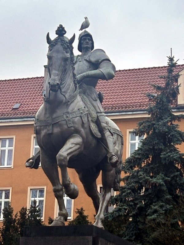 Na pomniku Andrei del Verrocchia przedstawiającym słynnego kondotiera Bartolomea Colleoniego dogodny punkt obserwacyjny znalazł jeden z licznych szczecińskich gołębi.