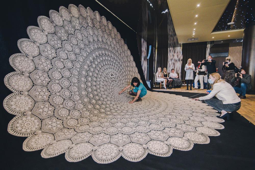 Koronczarki z Koniakowa znów zrobiły największą koronkę na świecie. Misternie uheklowana przez nie serweta, która niedawno uznana została za rekord Polski, jest teraz ozdobą Tygodnia Województwa Śląskiego na Expo 2020 w Dubaju.
