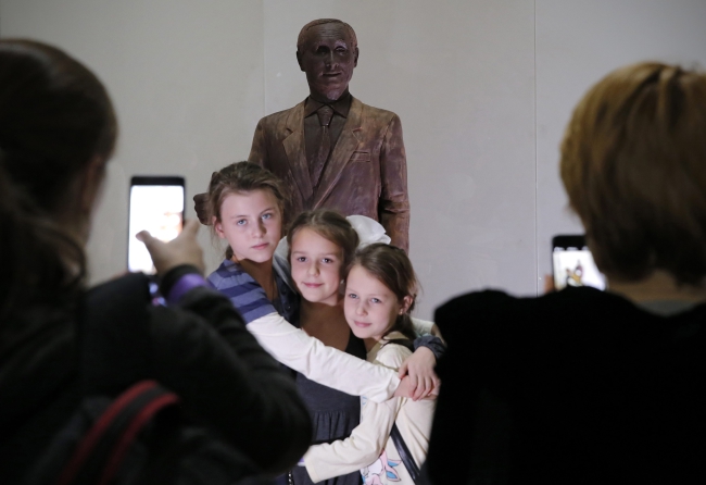 Nie tylko dzieci, lecz także dorośli bardzo chętnie pozowali do zdjęcia z Władimirem Putinem, a właściwie z jego podobizną wykonaną z czekolady. Była ona jedną z wielu figur na odbywającym się w Petersburgu Festiwalu Czekolady.