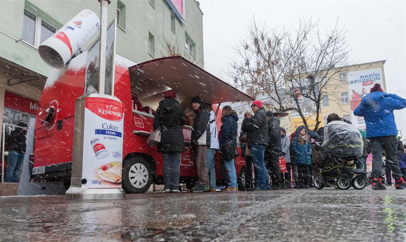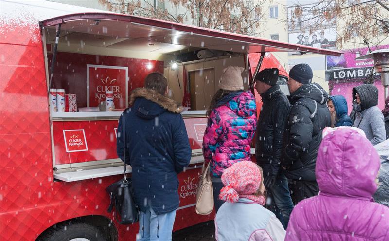 W weekend na pl. Kościuszki w Szczecinie każdy mógł zostać poczęstowany gofrem. Jedynym warunkiem był uśmiech na twarzy, sympatyczne zachowanie, miłe słowo. Przy gofrobusie poza słodyczami, na zawołanie można było także wywołać opady śniegu. Pojazd stoi jeszcze w niedzielę do godz. 19.