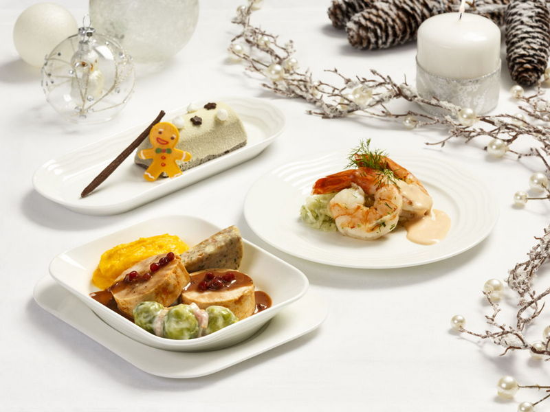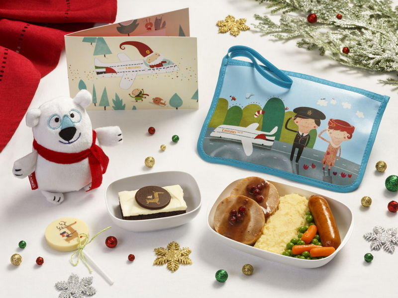 Oprócz dań inspirowanych kuchnią regionalną, serwowanych na pokładzie, linie Emirates po raz kolejny wprowadziły świąteczne menu. Dla pasażerów klasy ekonomicznej przewoźnik przygotował roladę z piersi indyka podawaną z sosem żurawinowym jus lié, purée ziemniaczanym, parówkami z kurczaka i warzywami sezonowymi. Na deser będą mogli spróbować świątecznych słodyczy, jak ciasto cytrynowe z żurawiną i polewą śmietankową czy ciasto kakaowe z wiórkami z białej czekolady i malinowym sosem coulis. Na dzieci czeka pieczony indyk z purée z batatów i marchewką z groszkiem oraz wilgotne czekoladowe brownie z polewą śmietankową i lizak z białej czekolady.