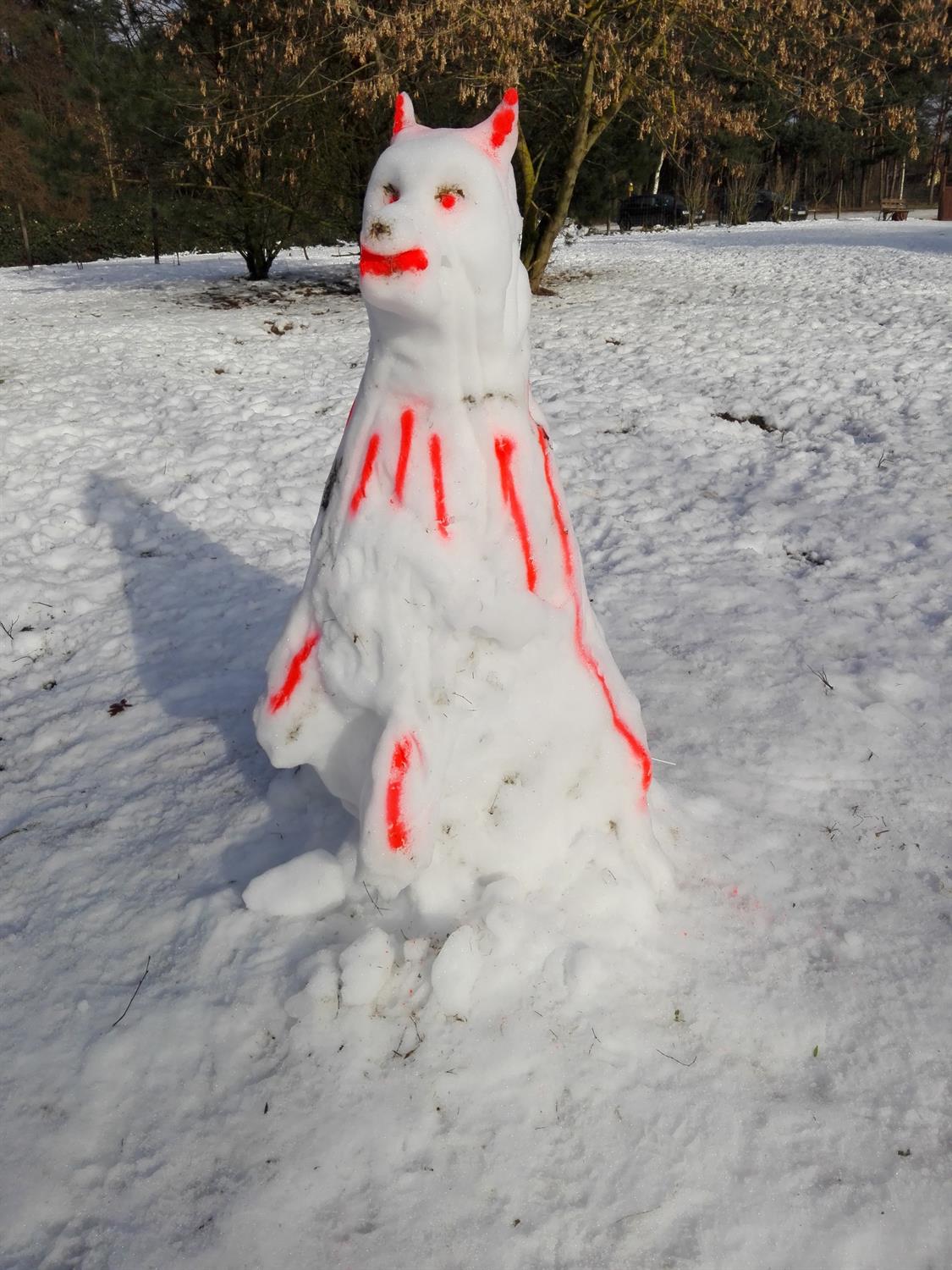 Niecodzienny bałwan, a w zasadzie śnieżna rzeźba pojawiła się na psiej polanie przy ul. Chopina, naprzeciwko Skarbówka w Szczecinie. Przedstawia siedzącego, a właściwie proszącego psa. Trzeba przyznać, że autorzy tego dzieła znają nie tylko psią anatomię, ale również psią naturę. Czworonożni bywalcy polany natychmiast zaakceptowali swego nowego kolegę, pomimo, że cały czas stoi on w miejscu i nie chce z nimi pobiegać.