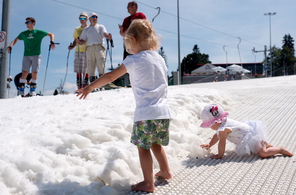 Mimo panującego upału – w Szczyrku było w czwartek 28 stopni Celsjusza – w ośrodku Beskid Sport Arena uruchomiony został naśnieżony stok. Miłośnicy szusowania mogą jeździć na nartach lub snowboardzie po nawodnionym igelicie i śniegu wytworzonym metodą All Weather Snow, dzięki której można wyprodukować śnieg nawet przy 40 st. Celsjusza. Do dyspozycji narciarzy jest trasa o długości 200 metrów.