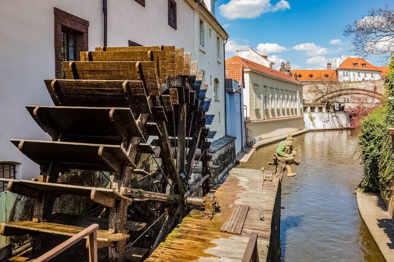Przez centrum Pragi przepływa najdłuższa czeska rzeka – Wełtawa, która służyła m.in. do napędzania młynów. Do dziś zachował się jeden z takich kanałów młynówek, zwany Čertovką. Oddziela wyspę Kampa od Maléj Strany. Zbudowali go w XII w. rycerze maltańscy. Woda płynie tam bardzo blisko domów i tworzy wenecką scenerię. Na kanale nadal działają dwa – z 9 – koła młyńskie.