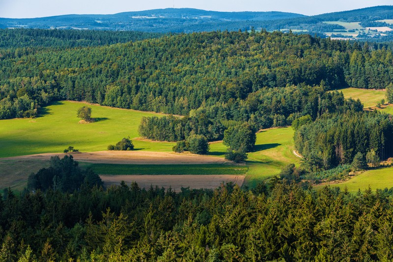 Wzdłuż granicy z Austrią leży z kolei Czeska Kanada. To rozległe lasy, stawy rybne, granitowe skały. Najwyższym szczytem jest Vysoký kámen (738 m n.p.m.).
