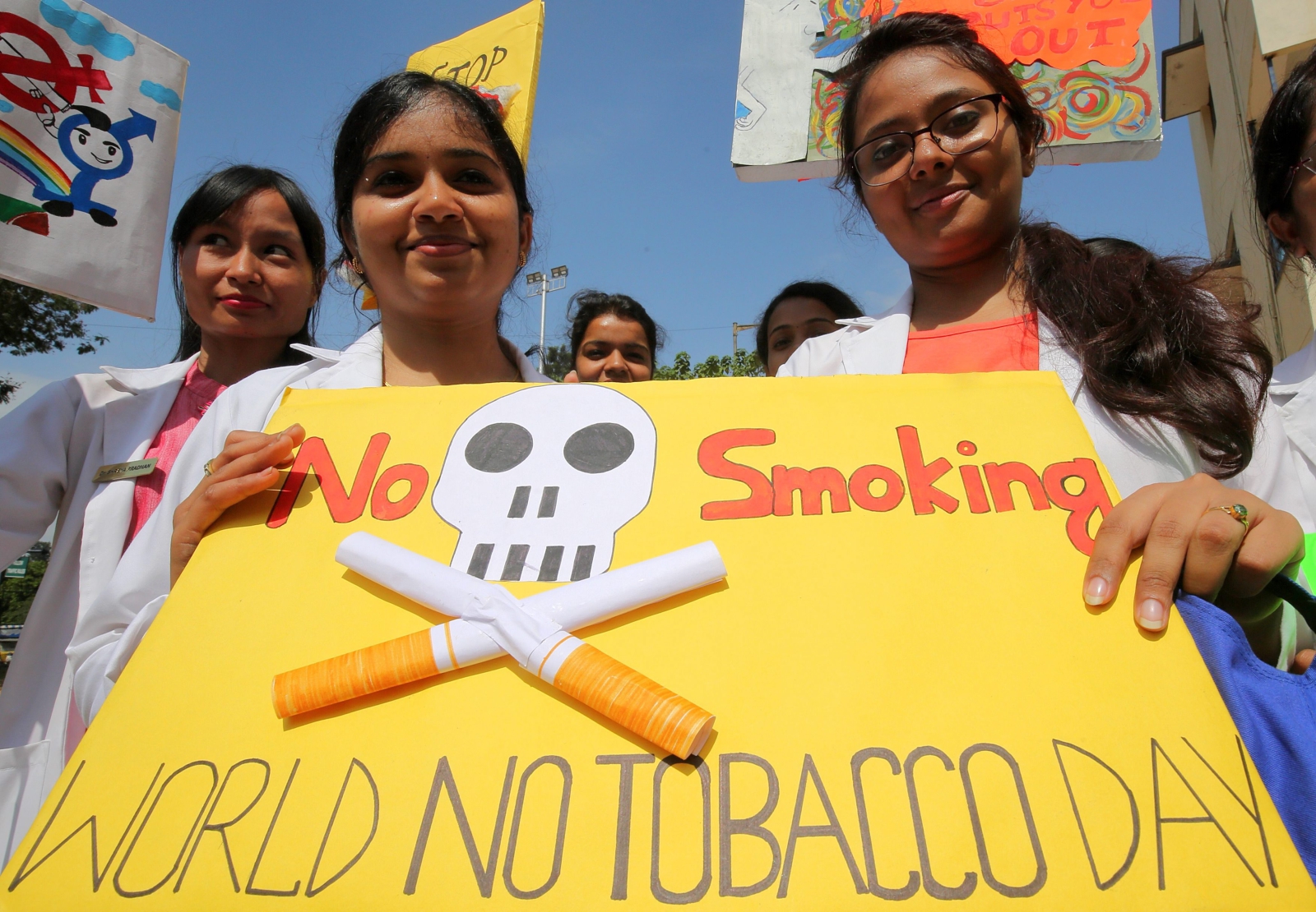 We wtorek (31 maja) obchodzony jest Światowy Dzień bez Papierosa. W wielu krajach odbyły się z tej okazji akcje zachęcające do rzucenia palenia lub zniechęcające do sięgania po tytoń. Na zdjęciu: członkowie indyjskich organizacji działających na rzecz zdrowia, którzy zorganizowali akcję mającą na celu podniesienie świadomości na temat zagrożeń zdrowotnych związanych z paleniem papierosów.