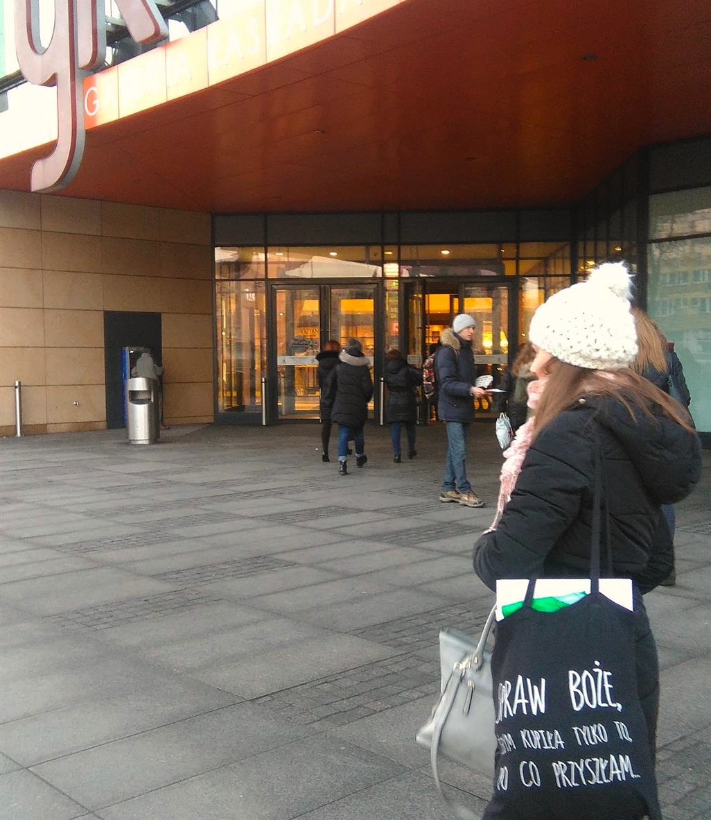 Kobieta na wejściu do centrum handlowego. Na jej ramieniu torba wypełniona po brzegi. Mimo nie budzącego wątpliwości życzenia: „Spraw Boże, abym kupiła tylko to, po co przyszłam". Niestety, pewnie wszyscy dobrze znamy tę... różnicę między mocnym postanowieniem poprawy a realiami gorączki zakupów, której – o zgrozo – niestraszna nawet fatalna zimowa aura.