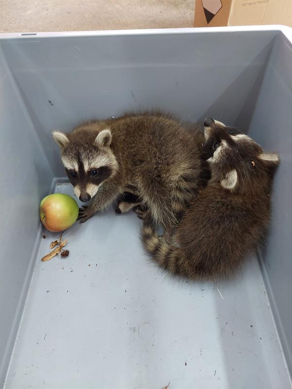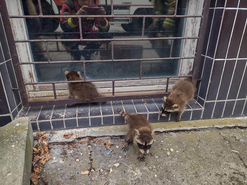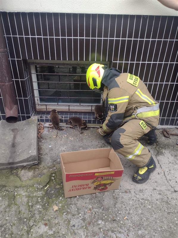 Na miejscu okazało się, że młode szopy są trzy. Strażacy przystąpili do działania.