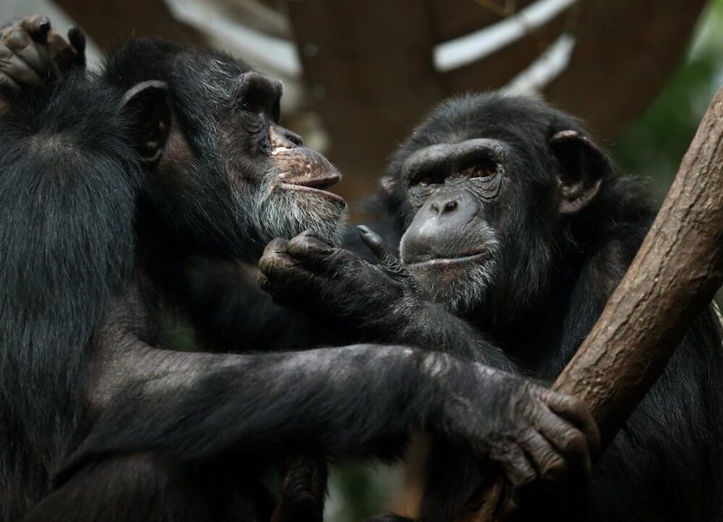 Szympansy są w stanie okazywać bardzo różne emocje. Tak jak ludzie, odczuwają radość oraz smutek. Bywają empatyczne, ale w zetknięciu z niechcianymi osobnikami potrafią być brutalne. Po utracie bliskich wpadają w rozpacz, a znane są także przypadki szympansów zmagających się z silnymi stanami depresyjnymi.