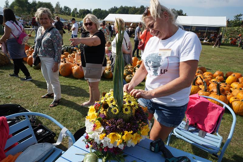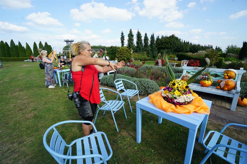 Wśród odwiedzających spotkaliśmy panią Iwonę Kowalik, emerytowaną nauczycielkę z Koszalina. Wyróżniała się ona bardzo oryginalnym strojem nawiązującym tematycznie do Dyniowego Garden Party.