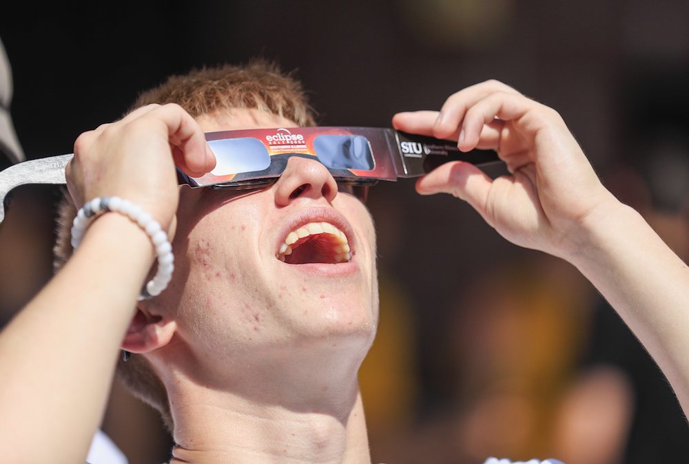 Amerykanin z miasteczka Carbondale w stanie Illinois w USA ogląda całkowite zaćmienie Słońca (trwało ono około 2 minut i 44 sekund). Poniedziałkowy fenomen astronomiczny był pierwszym całkowitym zaćmieniem Słońca obserwowanym od wybrzeża do wybrzeża USA od 1918 roku.