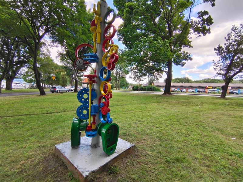 Metalowo-żeliwna konstrukcja powstała w latach 70. Jej autorem jest artysta Marian Olejniczak. Do jej stworzenia wykorzystano najprawdopodobniej elementy maszyn z dawnego Zakładu Urządzeń Mechanicznych Bumar. Instalacja była zaniedbana, pokryta rdzą i mchem. Teraz jest kolorowa. Pomysł jej odnowienia wyszedł od Towarzystwa Przyjaciół Stargardu.