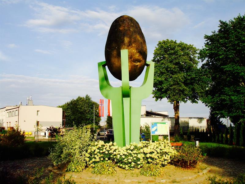 Razem ze stelażem liczy 9 metrów wysokości, w tym sama bulwa jest 3,5-metrowej wielkości. Pomnik Ziemniaka stoi przy drodze krajowej nr 11 w Biesiekierzu pod Koszalinem. Znawcy twierdzą, że to unikatowy w świecie i jeden z najdziwniejszych monumentów w kraju.