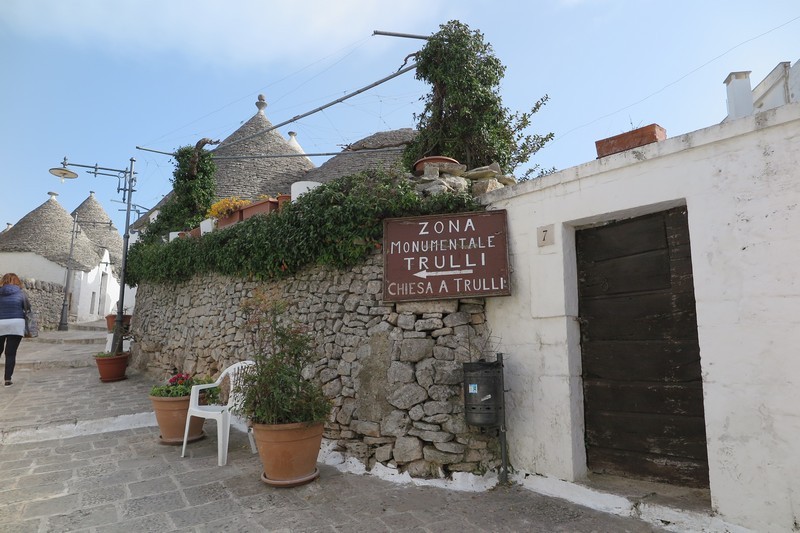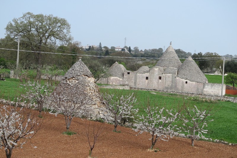 Już jadąc przez włoską dolinę Itrii, można się przyjrzeć trulli (l.mn., l.poj. – trullo). Sporo ich bowiem stoi tuż przy drogach do Alberobello czy na czerwonobrunatnych polach. Są wyremontowane, ale też i popadające w ruinę, co akurat pozwala już zawczasu poznać konstrukcję tych wyjątkowych i urokliwych budowli. Warto się na nie napatrzeć, bo są – jak dla mnie – mniej cukierkowe. Piękne krajobrazy zaś miłe dla oczu, które niebawem z trudem będą mogły ogarnąć „wysyp” trulli u celu wyprawy – w Alberobello.