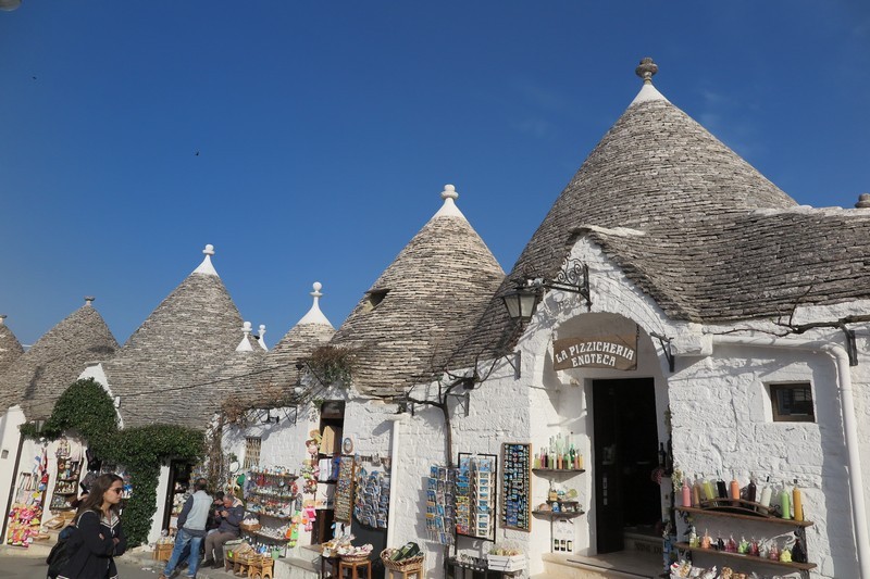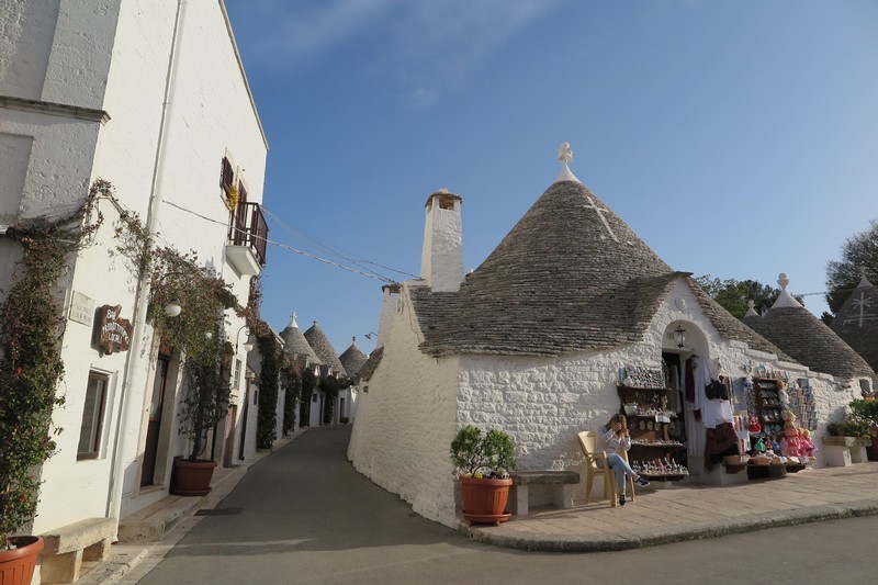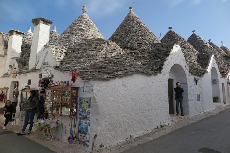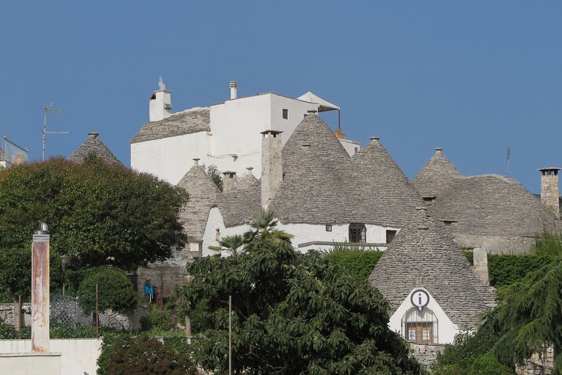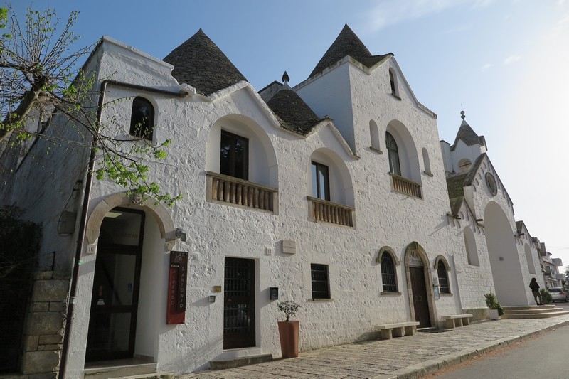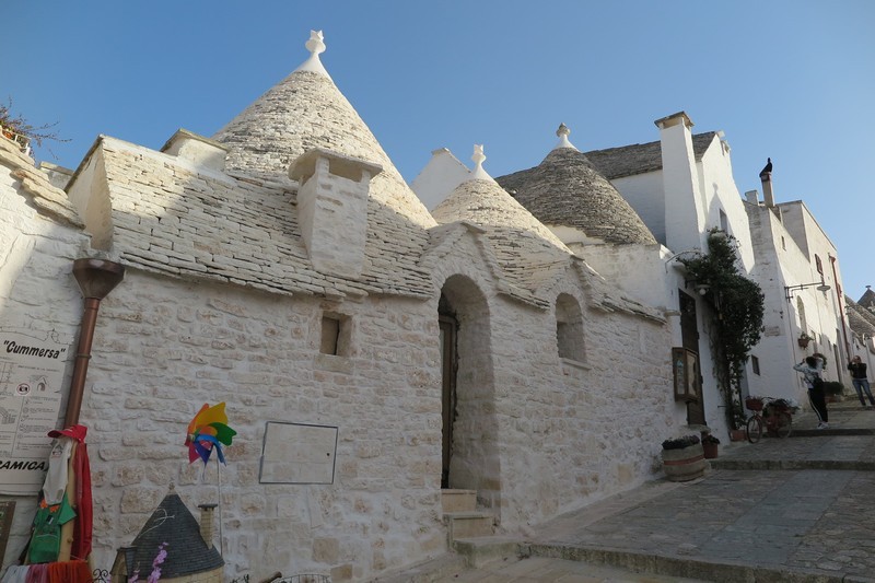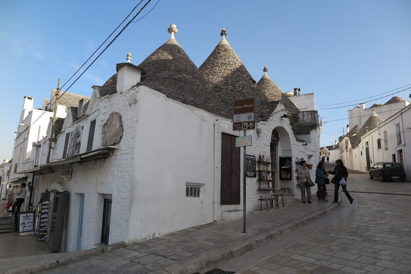 Drogi turystów w Alberobello wiodą do dzielnic: Monti – ze sklepami, hotelikami, winiarniami i Aia Picolla, bardziej mieszkalna. W pierwszej jest… 1030 trulli, w drugiej – 590. Zajmują 11 ha. Mają po ok. 200-300 lat, choć kościół św. Antoniego powstał w 1927 r. Wśród nich jest jedyne dwukondygnacyjne – trullo Sovrano, z ok. 1797 r. Zbudowała je zamożna rodzina księdza Catalda Perta. Było w nim seminarium. Teraz zaś muzeum pokazujące codzienne życie w trullo. Wyjątkowe jest też trulli Siamesi (syjamskie). Ponoć mieszkali w nim dwaj bracia zakochani w tej samej dziewczynie. Choć była obiecana starszemu, pokochała młodszego i z nim się związała. Początkowo mieszkali pod jednym dachem – w jednej izbie. Jak łatwo przewidzieć, dom trzeba było rozbudować. Zyskał dzięki temu wyjątkowy kształt – ma dwa połączone stożkowe dachy i dwa osobne wejścia.