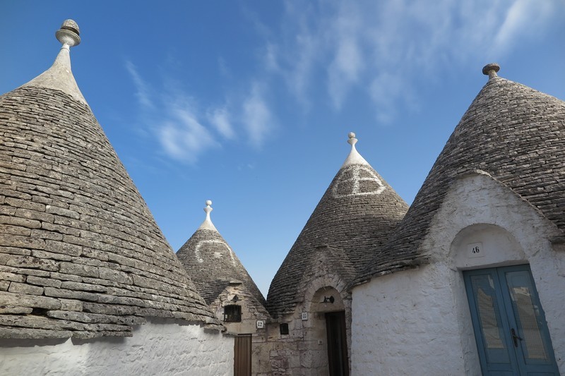 Prymitywne, wzniesione z wapienia budynki ze stożkowymi dachami, niektórym kojarzące się z domkami Smerfów, pokryte łupkiem i do tego często tajemniczymi symbolami, przyciągają nie tłumy, lecz istną chmarę turystów. Wielu z nich za punkt honoru, nie zważając na cenę, stawia sobie spędzenie w nich przynajmniej jednej nocy. Te wyjątkowe budowle w Alberobello to będące dziedzictwem ludzkości trulli. Jest ich tam – bagatela – ponad półtora tysiąca!