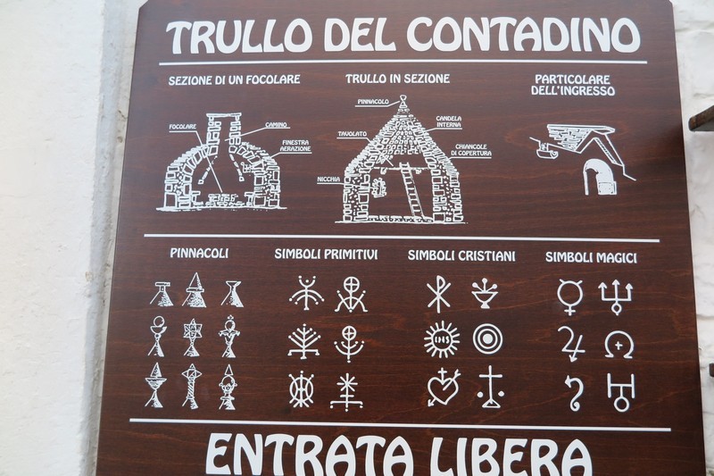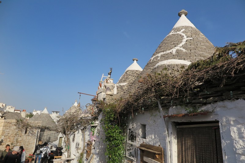 Wędrować uliczkami Monti i Aia Piccola można długo. W niektórych trulli są udostępniane dachy, z których podziwiać można las stożków. Na wielu z nich są intrygujące, zrobione wapnem symbole. Miały zapewnić mieszkańcom zdrowie, pomyślność. Utrudzeni spacerem nie zapomnijmy zjeść tradycyjnej tam kanapki „Pasqualino”. ©℗