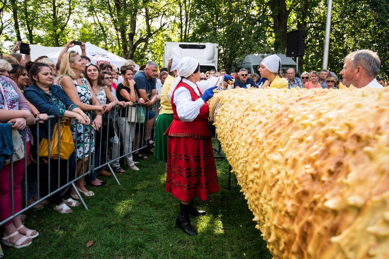 Po upieczeniu sękacz został pokrojony na kilka tysięcy kawałków. Każdy uczestnik święta mógł spróbować wypieku.