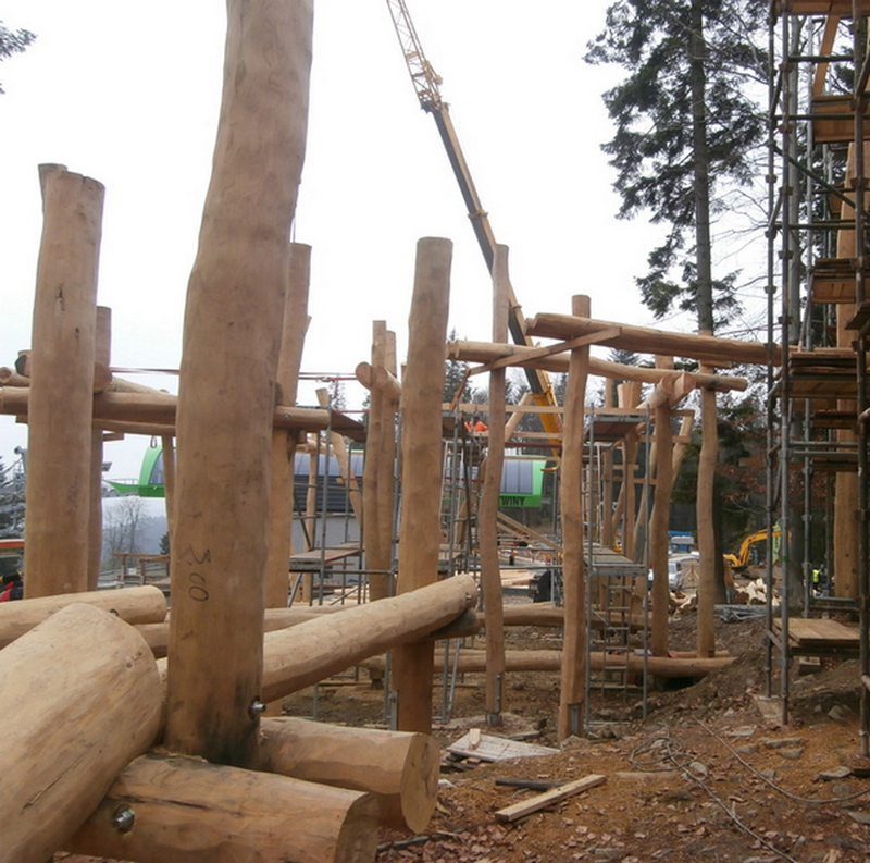Drewniany trakt podpierany będzie przez 18 wież wsporczych i 87 słupów. Przy jego projektowaniu pierwszy raz w Europie zastosowano w dwóch miejscach system piętrowej ścieżki. Dzięki zastosowaniu drewna z robinii akacjowej inżynierowie tworzą solidną konstrukcję, spełniającą zarówno standardy bezpieczeństwa, jak i gwarantującą walory estetyczne.
