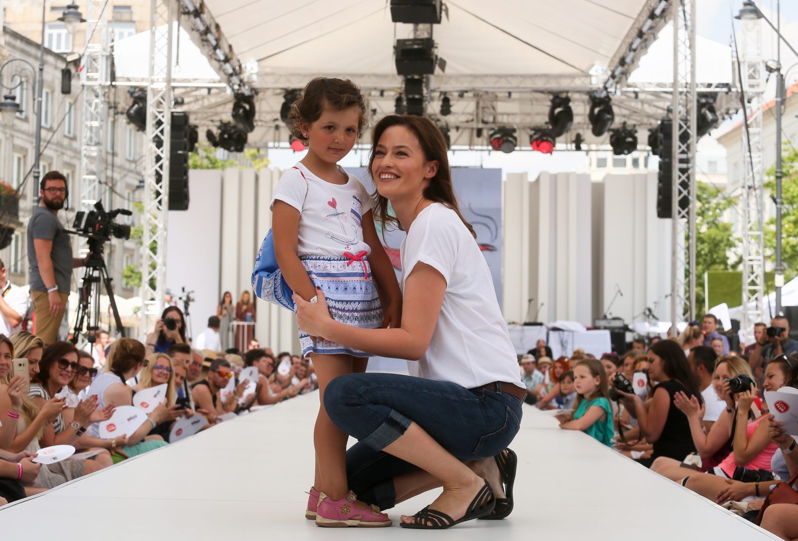 Aktorka Magdalena Różczka i mała modelka, podczas pokazu charytatywnego mody dziecięcej, dedykowanego Fundacji Spełnionych Marzeń, który odbył się w niedzielę (26 czerwca) w ramach IMS Warsaw Fashion Street na Krakowskim Przedmieściu. W roli modelek i modeli wystąpili podopiecznych fundacji - dzieci po przebytych chorobach nowotworowych. Towarzyszyły im gwiazdy kina i estrady.