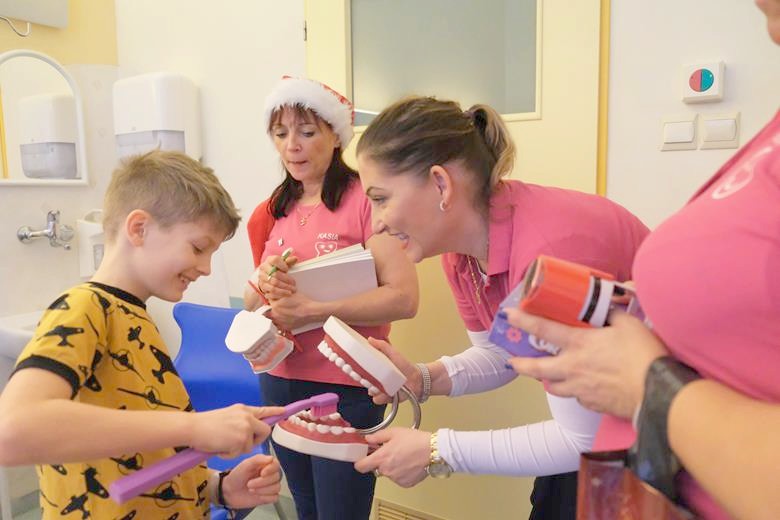 Instruktaż higieny jamy ustnej i wskazówki dotyczące dbania o zęby przyczynią się do polepszenia zdrowia ogólnego. Na każdego dzielnego pacjenta czekał tego dnia mały upominek.