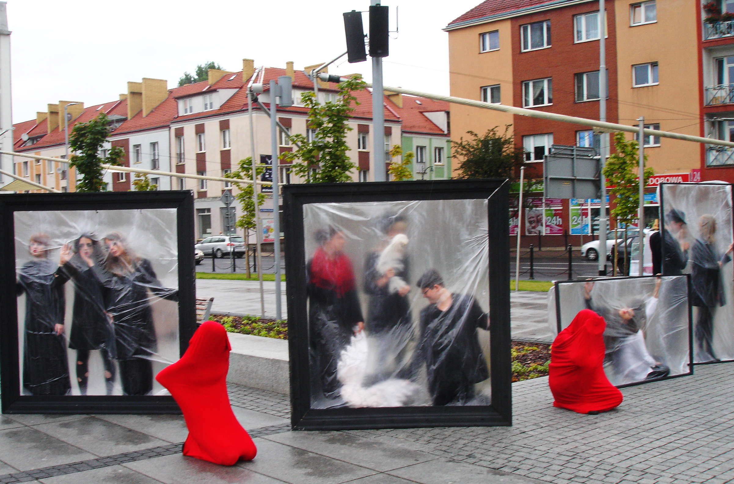 W tych lustrach nie można się było przejrzeć, bo schowali się za folią członkowie grup teatralnych. Wyszli też tancerze, żeby skryć twarze pod kolorowymi strojami. Zwierciadła jako żywe obrazy? - Nasz happening jest o młodych, lecz niekoniecznie tylko dla młodych - mówili uczestnicy prezentacji, którą w sobotnie (12 bm.) przedpołudnie usiłował przerwać deszcz. Żywe obrazy były jedną z form promocji dokonań sekcji Pałacu Młodzieży, także takich jak plastyka czy fotografia na Rynku Staromiejskim w Koszalinie. Galeria prac wzbudzała ciekawość gapiów. Również pochwały. - Człowiek nagle się dowiaduje, że utalentowanych ludzi u nas nie brakuje - powiedział pan Robert. ©℗