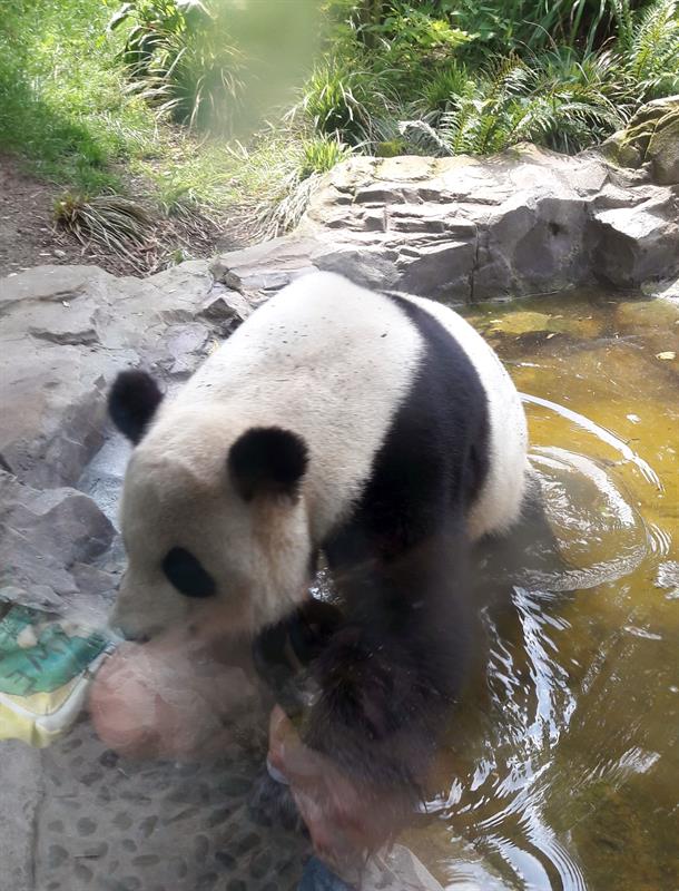 A jak się wróci tą drogą i pójdzie obok żubrów, dotrze się do ogrodu pand. Pandy Meng Meng i Jiao Qing mieszkają osobno. Stoi tam też chińska pagoda. Pandy przyjechały do Berlina aż z Chin. Na całym świecie żyje tylko około 2000 pand na wolności.