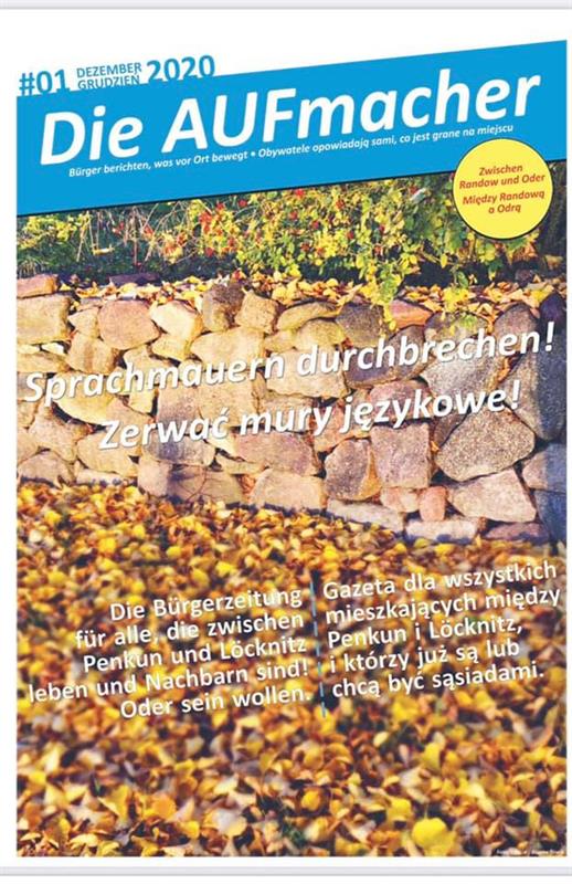 Wczoraj, z datą 1 grudnia 2020 roku, ukazał się pierwszy numer polsko-niemieckiej gazety obywatelskiej „Die AUFmacher”. Na pierwszej stronie, pod hasłem: „Sprachmauern durchbrechen – Przełamać mury językowe”, redakcja pisze, że gazeta jest „dla wszystkich, którzy mieszkają między Penkun a Löcknitz i są już lub chcą być sąsiadami”.