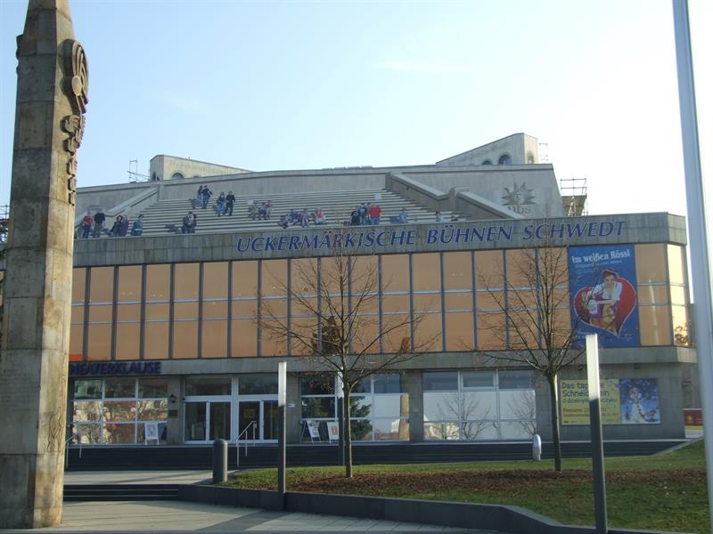 Wróćmy więc do niej. Powstała w 1963 r., gdy ukończono ropociąg Przyjaźń. Tak jak rafinerie w Płocku i Leunie (Saksonia-Anhalt) miała świadczyć o „wiecznej przyjaźni z bratnim ZSRR”. Schwedt miało być nadto modelowym miastem socjalizmu. Rok przed otwarciem rafinerii w powietrze zostały wysadzone ruiny zamku margrabiów i teatru. Piętnaście lat potem w miejscu zamku, blisko Odry, zbudowano wielki teatr. Jest faktycznie dumą miasta, choć przyjezdni dziwią się, jak to możliwe, że w 30-tysięczny mieście pracuje teatr repertuarowy, mający trzy sceny w gmachu i scenę plenerową nad Odrą. Największa sala mieści ponad 830 widzów, fasadę zdobią portrety twórców niemieckich i polskich. Z zamku zachowała się brama wjazdowa i trochę rzeźb. Jego walory uzmysławia przestrzenny model.