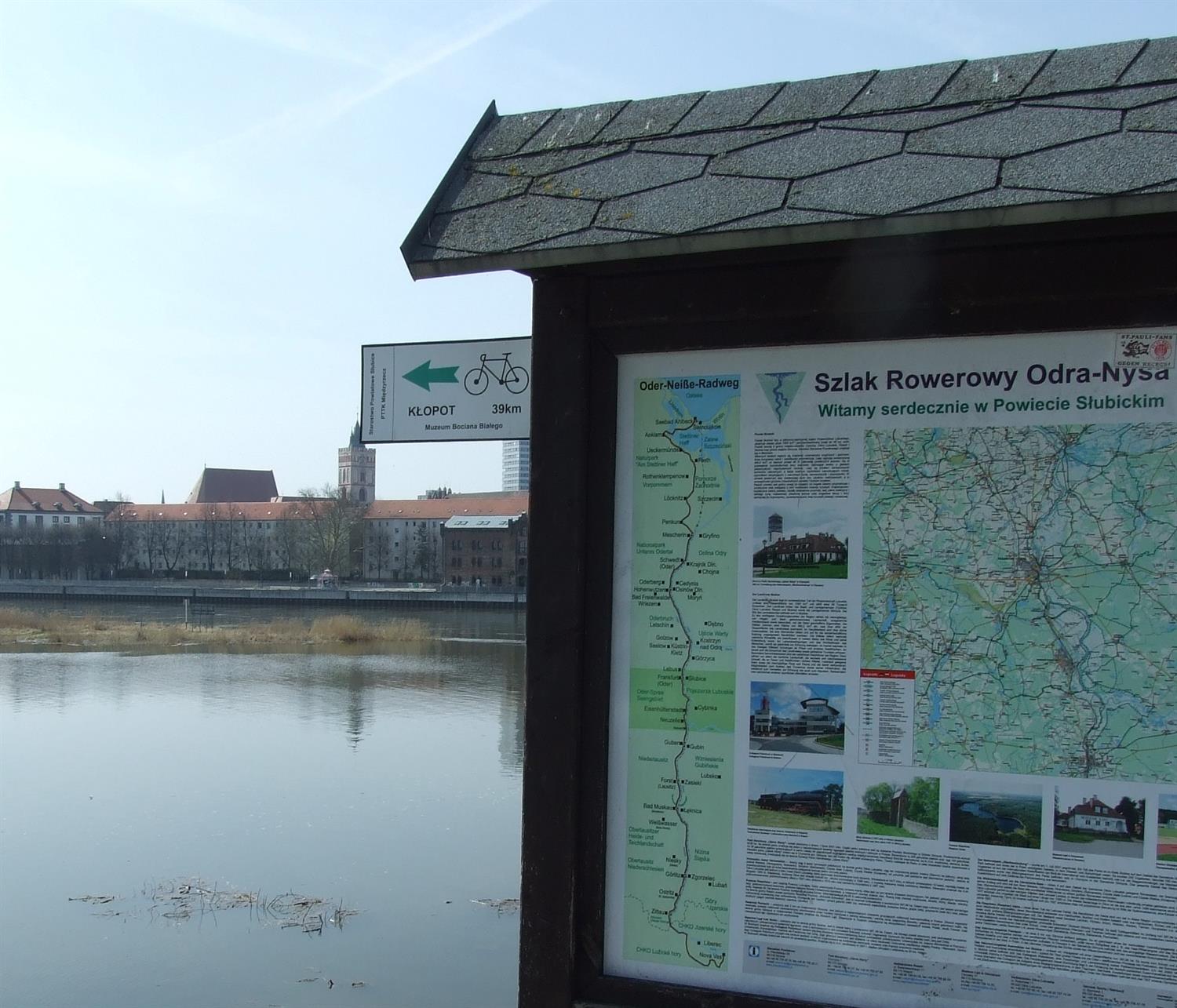 Tradycje w powiecie słubickim to sprawa nieprosta. Chodzi na przykład o herb. Prawo stanowi, że musi on nawiązywać do lokalnych tradycji heraldycznych. Dotychczasowy herb powiatu, ustanowiony w 2000 roku – polski biały półorzeł na czerwonym tle z lewej strony, a z prawej – Odra jako błękitna fala na tle żółtym – zakwestionowała państwowa Komisja Heraldyczna. Władze powiatu, chcąc problem ostatecznie rozwiązać jeszcze przed planowaną zmianą strony internetowej, zleciły opracowanie nowego herbu światowej sławy specjaliście i wieloletniemu członkowi tejże komisji. Jego projekt, zatwierdzony niedawno przez Radę Powiatu i organy państwa, to brandenburski czerwony orzeł na białym tle, a pod nim błękitna wstęga symbolizująca Odrę.