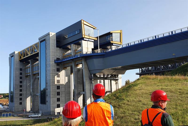 Nowa podnośnia, która stanęła obok starej – światowego cudu techniki lat międzywojnia (budowa w 1934 roku), powstawała czternaście lat, a więc dłużej niż planowano, i kosztowała więcej niż planowano. Dzięki niej statki, płynące Odrą i Hawelą między np. Świnoujściem/Szczecinem a Berlinem/Brandenburgią i Europą Zachodnią, będą sprawniej pokonywały 36-metrową różnicę wysokości, dzielącą zlewnie obu rzek, a tym samym dwie części kanału Odra – Hawela.
