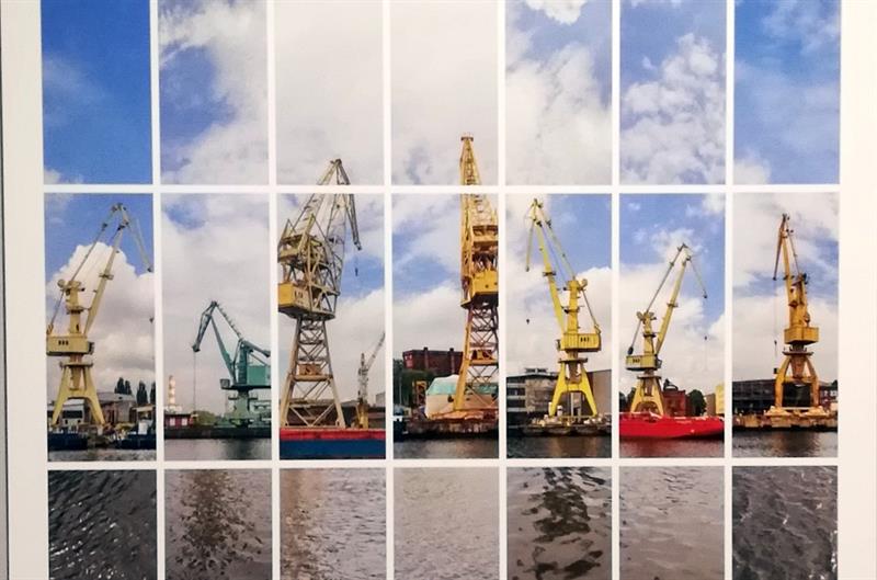 Niektóre z nich pokazuje osobno, lecz większość zestawił w kompozycje dwóch-trzech, aż do dwudziestu jeden. Każda z nich to opowieść. Na zdjęciach są różne ujęcia nurtu, kolory i kształty fal, chmur, architektury, krajobrazu. Są fasady wiejskich domów, raz odnowione, raz z liszajami, nabrzeża, urządzenia portów, gotyk kościołów, wieżowce z wielkiej płyty, zaułki, znaki drogowe, jak też symbole narodowej tożsamości i religijnej odrębności: biało-czerwone flagi nad brzegiem i widoczny z daleka pomnik Chrystusa Króla pod Świebodzinem. Lemberg nie koloryzuje. Na jednym zdjęciu jest betonowa ściana nowego hipermarketu, na innym – wysokościowce z wielkiej płyty za betonowym placem. Stworzył swoje panoramy miast, w tym Szczecina.