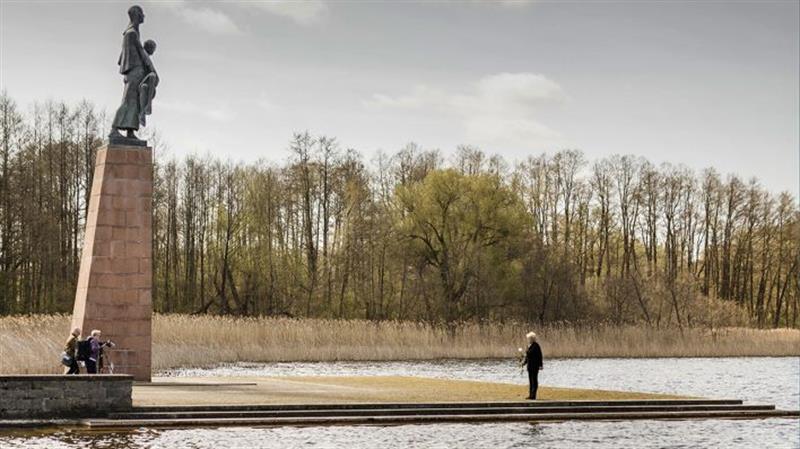 Kończąc przemówienie, złożyła symboliczną biała różę w wodach jeziora okalających półwysep, na którym stoi pomnik.