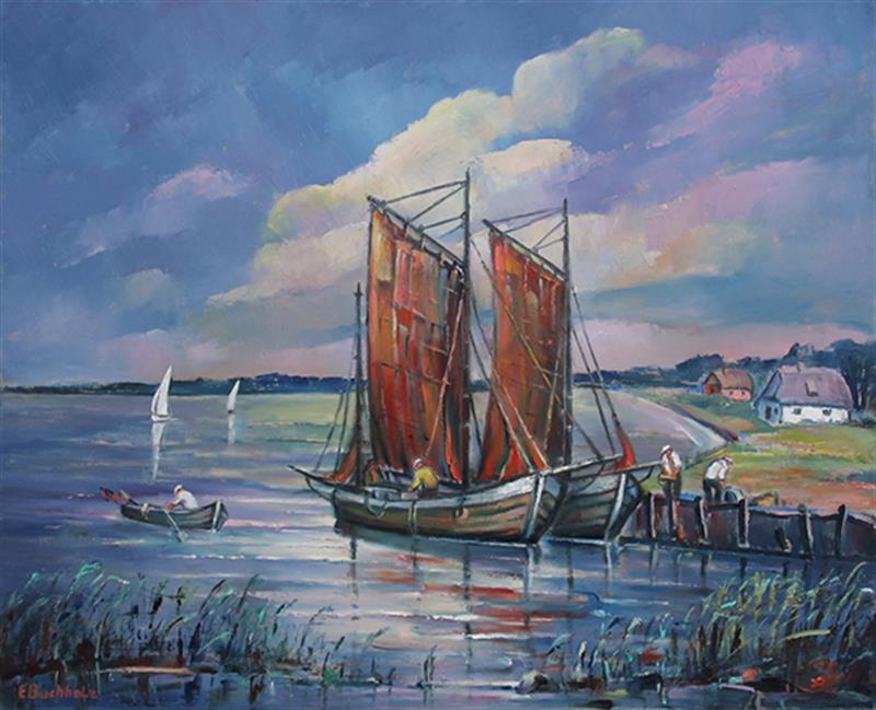 Eckhard Buchholz jest artystą malarzem i grafikiem, autorem pejzaży, martwych natur, portretów, obrazów historycznych z dziejów Pomorza, tryptyku poświęconego zjednoczeniu Niemiec. Za dzieło swego życia uważa cykl obrazów i grafik historycznych „Wikingowie”.