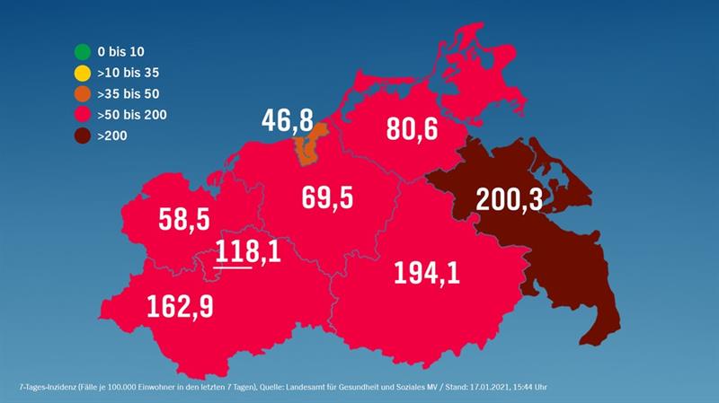 W Meklemburgii-Pomorzu Przednim wskaźnik nowych zakażeń wynosi 122 na 100 tysięcy mieszkańców i rośnie. W graniczącym z Polską powiecie Vorpommern-Greifswald jest najwyższy w landzie i wynosi 200,3. Poniżej 200 zmniejszył się w powiecie Mecklenburgische Seenplatte. Być może jedną z przyczyn jest bardzo częste testowanie w domach opieki, obejmujące także osoby, które odwiedzają bliskich. Do testowania dodatkowo zatrudniono wykwalifikowanych wolontariuszy.