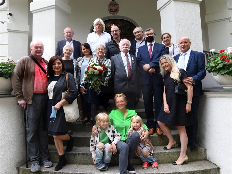 Na zdjęciu: Na schodach Ambasady RP w Berlinie. Ryszard Dąbrowski (w środku) z rodziną i berlińskimi przyjaciółmi. Przy nim Grażyna Dąbrowska i ambasador Andrzej Przyłębski.