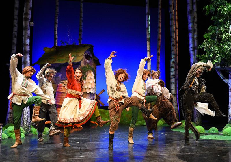 Na zdjęciu: Mama Wassilissa, jej synowie, ich przyjaciele i Baba Jaga w szalonym tańcu na scenie