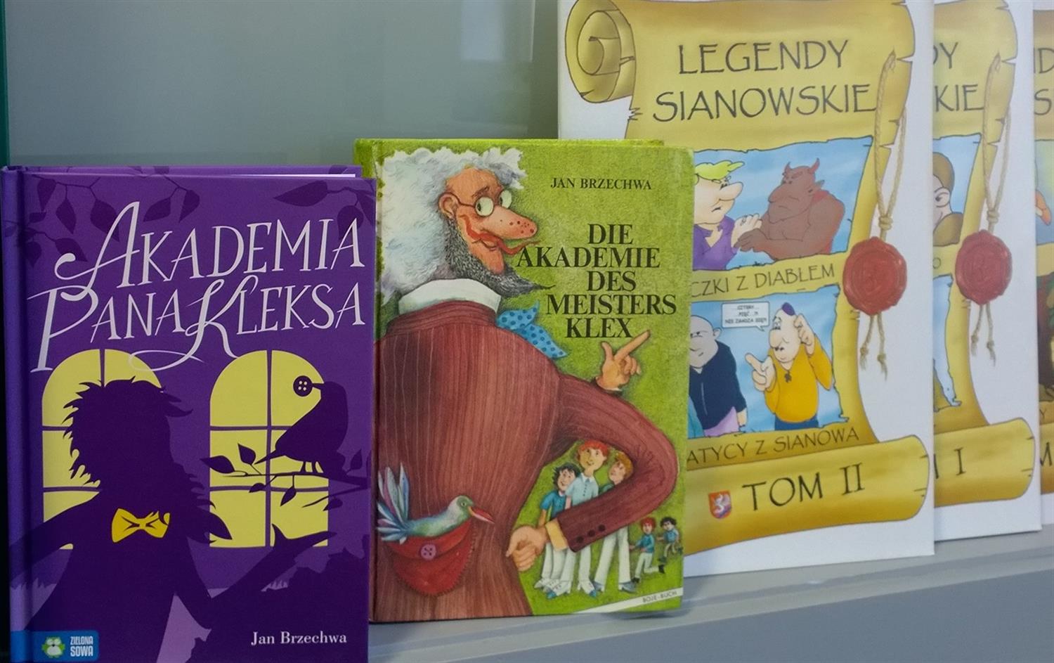 Na specjalnej półce obok „Akademii pana Kleksa” stoi „Akademie des Meisters Klex”, a obok „Lokomotywy” – „Die Lokomotive”. Ogrzewa się przy nich kilka tomów „Legend sianowskich”, polsko-niemiecki zbiór baśni, pięknie wygląda polskie tłumaczenie popularnej w Niemczech, przełożonej na różne języki, bogato ilustrowanej opowieści „Śnieżek, kim jestem?”, napisanej przez znanych w Niemczech turecko-niemieckich autorów İbrahima Çayıra i Mustafę Cabe (ilustracje: Esin Sahin). Stoją tu też polskie książki i albumy, podarowane przez miasto Police, od wielu lat współpracujące z Pasewalkiem. Obok „Cudów Polski” jest kolorowy słownik niemiecko-arabski.