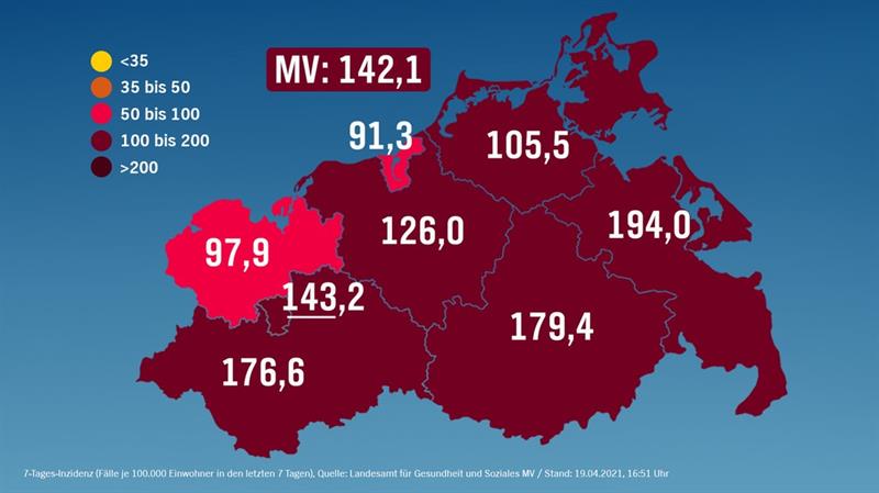 Meklemburgia-Pomorze Przednie. Wskaźnik nowych zachorowań w landzie spadł ze 150 na 142 na 100-tysięcy mieszkańców w ciągu siedmiu dni. Tylko w dwóch powiatach (Nordwestmecklenburg i miasto Rostock) wskaźnik ten nie przekracza 100. Rząd w Schwerinie wprowadził czterotygodniowy lockdown. Zwiększa się liczbę punktów testowania. W tych regionach/miastach, gdzie wskaźnik zachorowań wynosi 100 i więcej, obowiązuje zakaz wychodzenia z domów w godz. 22-6 bez koniecznego powodu. Członkowie jednego gospodarstwa domowego mogą spotykać się tylko z jedną osobą spoza nich. Ograniczenie nie stosuje się wobec dzieci do lat 14. W szpitalach przebywa 270 pacjentów chorych na COVID-19, w tym 72. na intensywnej terapii. Zawieszono planowe zabiegi. Zachorowania stwierdzono w 56 żłobkach i przedszkolach (zachorowało 51 dzieci i 34 pracowników) oraz w 63 szkołach (zachorowało 83 uczniów i 12 pracowników). Otwarte są te żłobki i przedszkola, w których opieka jest konieczna ze względu na pracę rodziców. To samo dotyczy uczniów klas 1-6. Do szkół uczęszczają uczniowie szkół specjalnych i tych klas szkół powszechnych, którzy w tym roku kończą naukę. Pracują tylko sklepy niezbędnego zaopatrzenia. Rząd zamknął land dla wszystkich turystów, a dla mieszkańców landu także dwa najbardziej ulubione przez nich regiony – Mecklenburgische Seenplatte i wyspę Uznam, gdzie sytuacja jest szczególnie trudna. Można tam jeździć tylko ze względu na pracę i pobyt u najbliższej rodziny. Zakaz dotyczy także camperów i osób, które mają tam domy/mieszkania, lecz drugiego pobytu. W ubiegły weekend policja prowadziła tam wzmożone kontrole. Niesubordynowanym grożą mandaty 150-2000 euro. Najtrudniejsza jest sytuacja w graniczącym z Polską powiecie Vorpommern-Greifswald, gdzie wskaźnik zachorowań zbliża się do 200, a według danych, które są podawane bez opóźnień, przekroczył wczoraj wartość 239. Jedną dawkę szczepionki otrzymało dotychczas około 20 proc. mieszkańców landu.