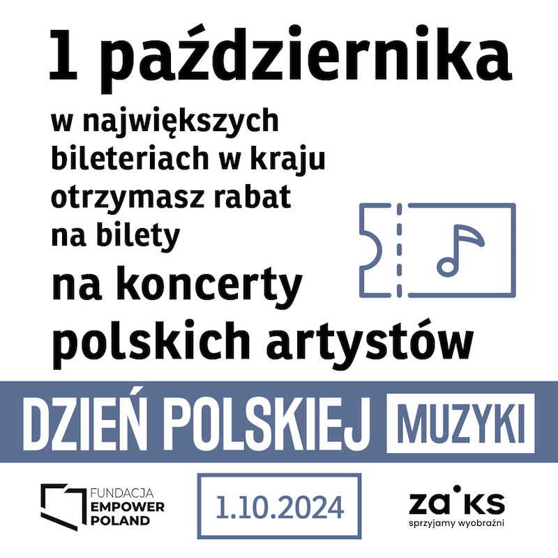 Z kolei Biletyna z okazji Dnia Polskiej Muzyki zaoferuje rabat od 15% na wybrane koncerty polskich artystów. W Biletynie akcja trwa od 1 do 6 października. Szczegółowe informacje o promocjach i trwających konkursach z okazji Dnia Polskiej Muzyki znajdziecie na stronie www.dzienpolskiejmuzyki.pl/ i w mediach społecznościowych Dnia Polskiej Muzyki.