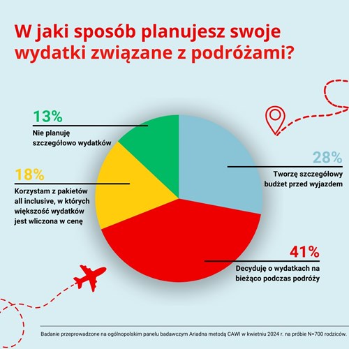 Ponad połowa polskich rodziców przyznaje, że ich decyzje dotyczące wydatków wakacyjnych są spontaniczne – decydują o nich na bieżąco i nie planują ich szczegółowo przed wyjazdem. 18% respondentów korzysta z pakietów all inclusive, w których większość wydatków jest już wliczona w cenę. Zaledwie 28% badanych przygotowuje dokładny budżet przed podróżą, co sugeruje, że świadome zarządzanie finansami wciąż nie jest powszechną praktyką.