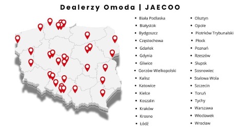 Po drugie - ekspansja sieci salonów. Chery (właściciel Omoda i Jaecoo) nie tylko ogłosił wejście na rynek, ale też otworzył już pierwsze punkty dealerskie w największych miastach w Polsce, m.in. w Warszawie, Krakowie, Wrocławiu, Poznaniu, Rzeszowie, Gdańsku i wielu innych. Na pierwszej konferencji dealerów w Polsce (czerwiec 2024) ogłoszono współpracę z ponad 15 partnerami i zapowiedziano uruchomienie ponad 30 lokalizacji do końca roku. Dziś działa szereg lokalizacji, oferując jazdy testowe, serwis i pełną obsługę przed i posprzedażową.